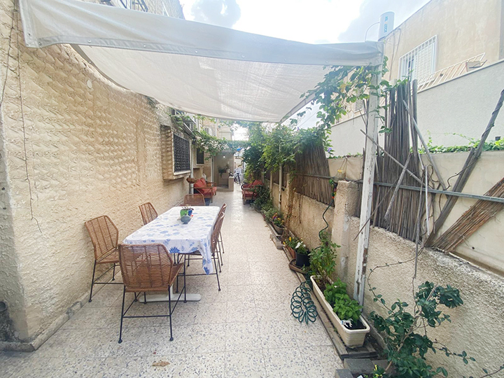 בחוץ מחכה לכם חצר ירוקה עם עצים באווירת מושב — פינה נדירה בלב העיר! (החצר אינה רשומה בטאבו, שימוש בה על בסיס הסכמה בעל-פה).